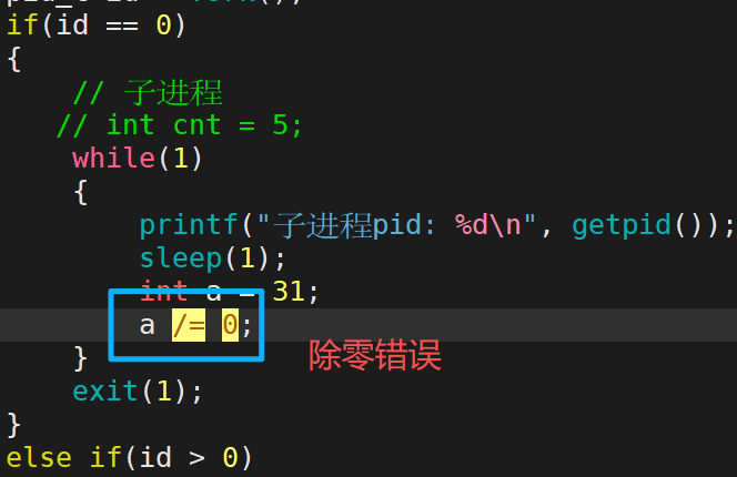 因出现某种错误,比如除零、越界、野指针等,代码没跑完就被信号终止了,就是进程异常。