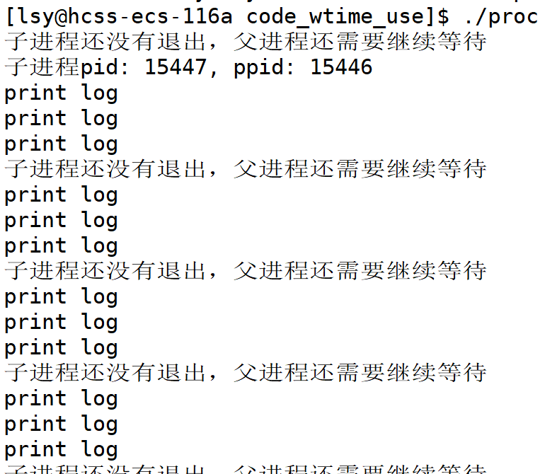 printf("子进程还没有退出,父进程还需要继续等待\n");
