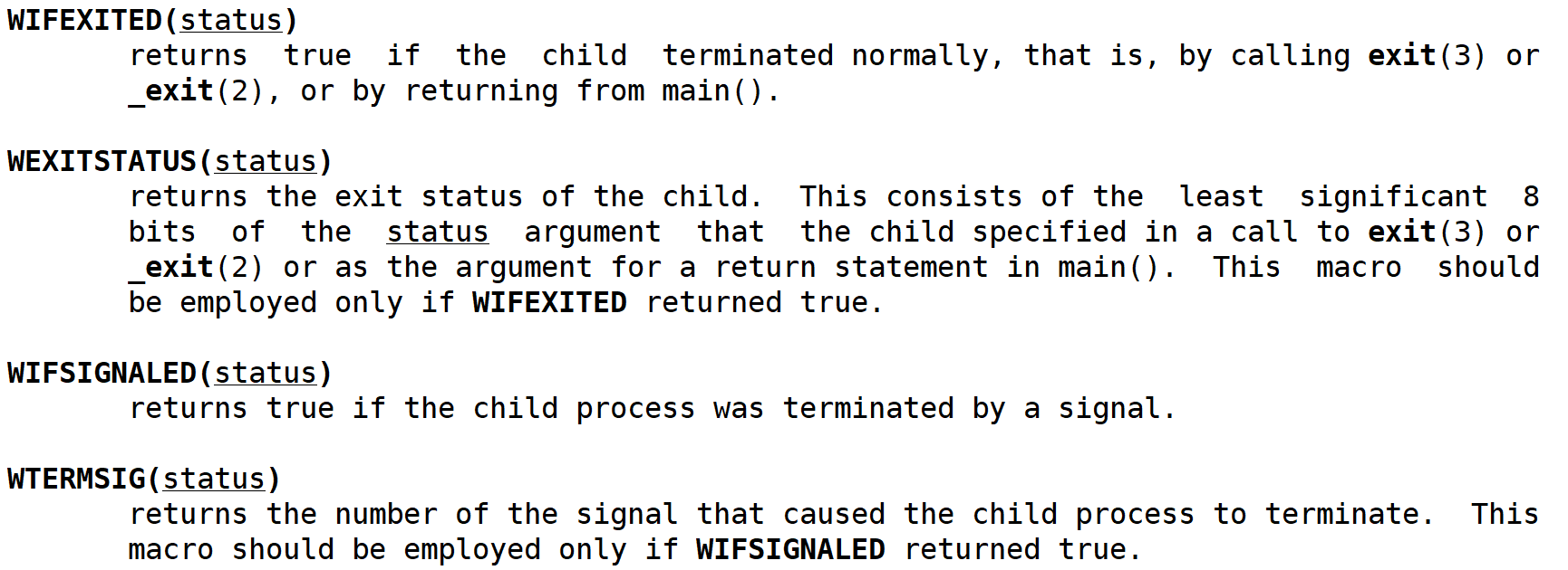 #define WEXITSTATUS(status) ((status>>8) & OxFF)