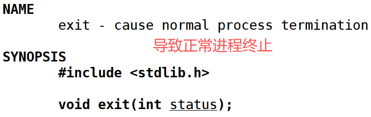 在程序中的任意位置调exit() --> 语言提供的,传递的参数是进程的退出码。
