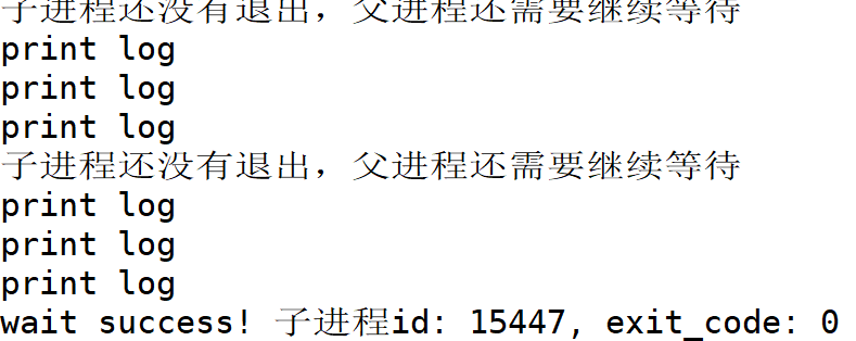 printf("wait sucess! 子进程id: %d, exit_code: %d\n",