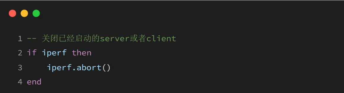 关闭当前正在运行的 iperf 测试,无论是 server 模式还是 client 模式。
