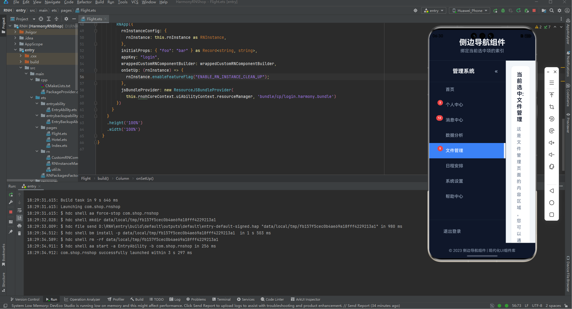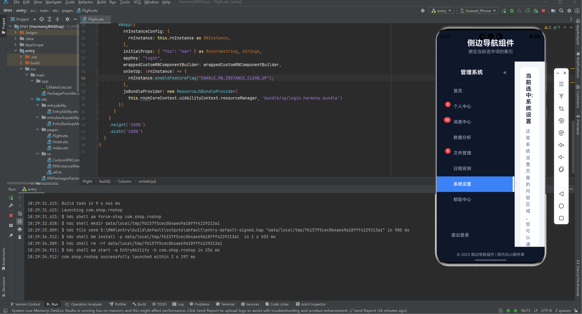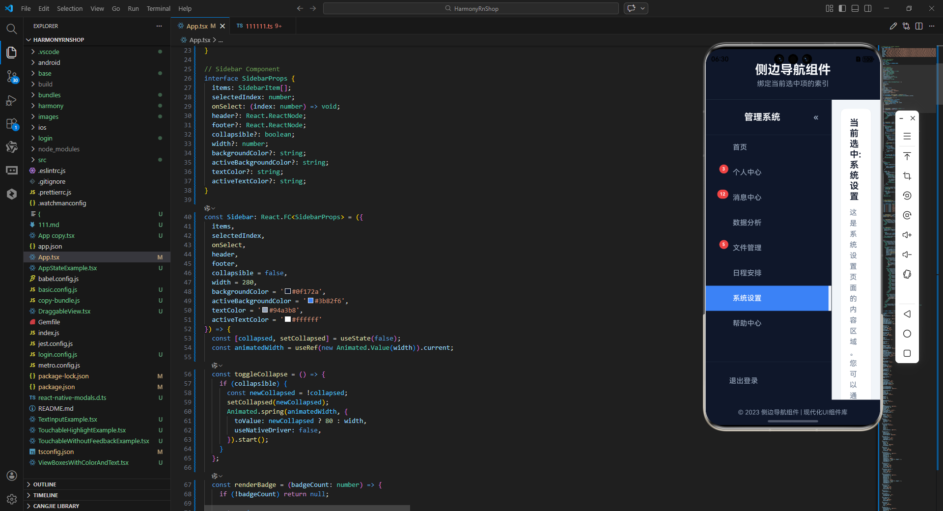 在移动跨端开发领域,侧边导航(Sidebar)作为应用核心的导航载体,其交互体验与跨端适配能力直接决定了应用的整体使用感受。本文以一个功能完整的 React Native 侧边导航组件为例,从组件架构设计、核心功能实现、TypeScript 类型约束、动画交互优化等维度展开深度解读,并系统探讨该组件向鸿蒙(HarmonyOS)跨端适配的核心技术路径,为跨端导航组件开发提供可落地的实践参考。