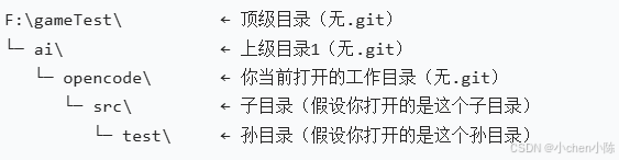 F:\gameTest\ai\opencode\src的上级是F:\gameTest\ai\opencode\,再上级是F:\gameTest\ai\); - Git 仓库根目录 = 包含