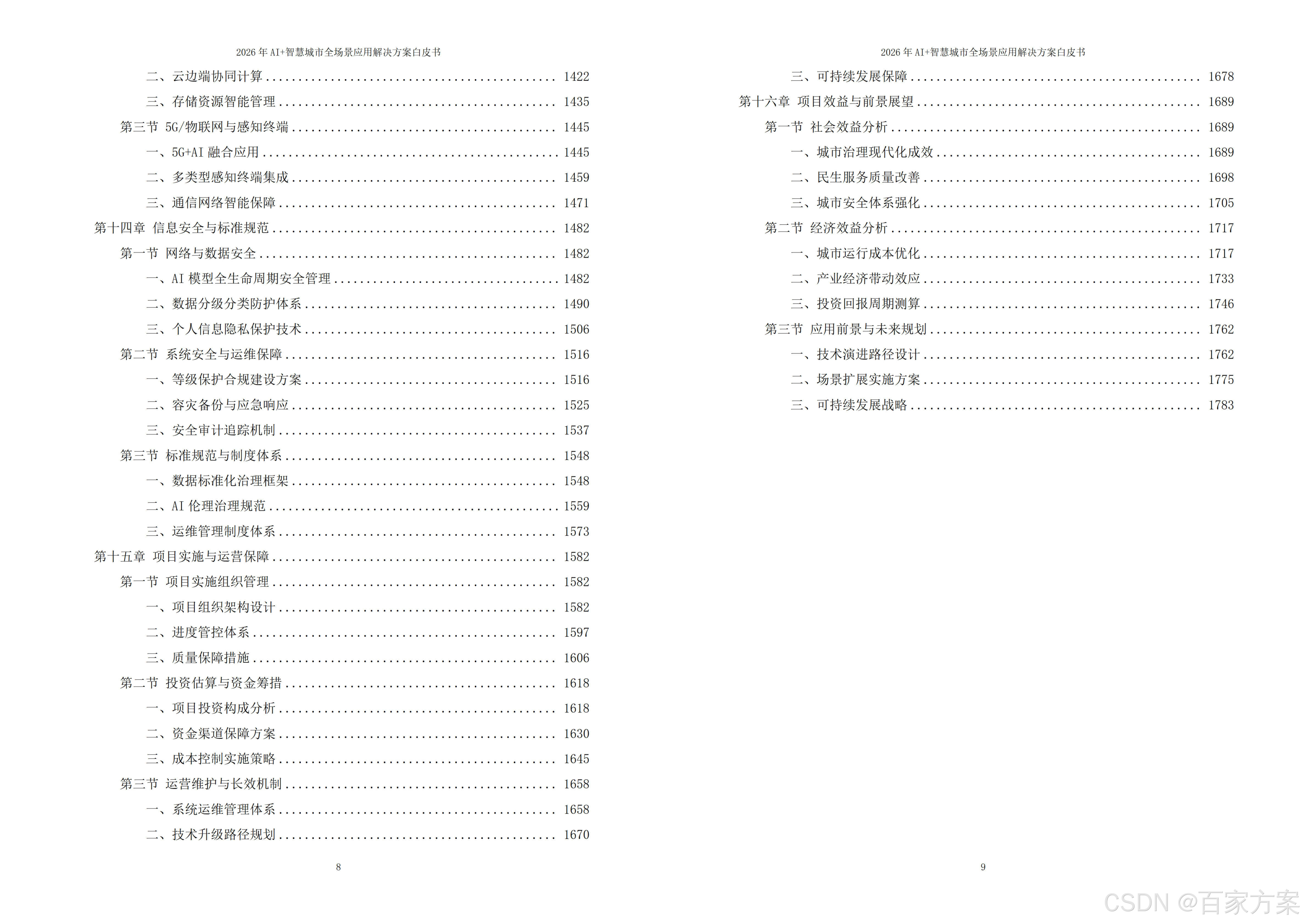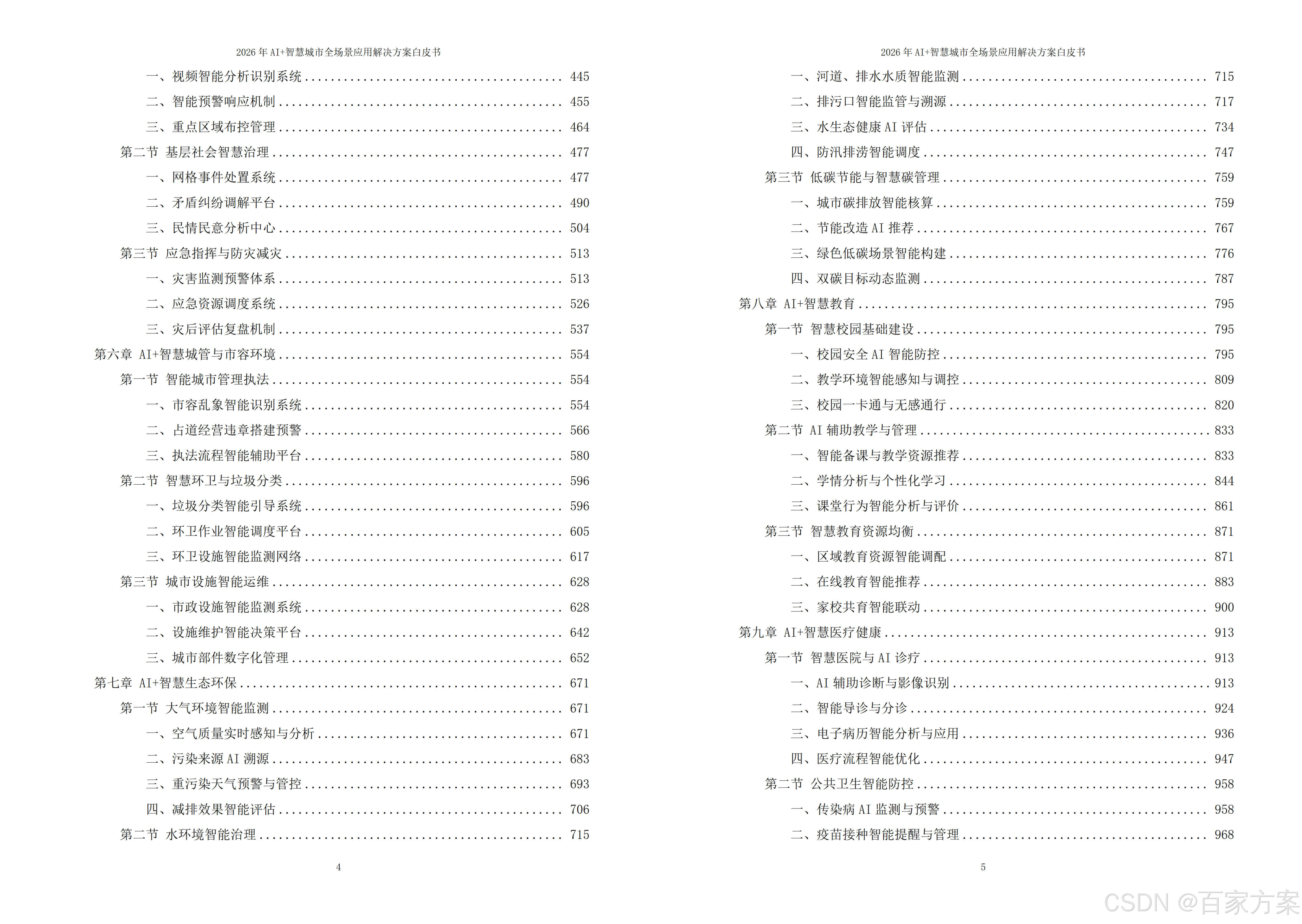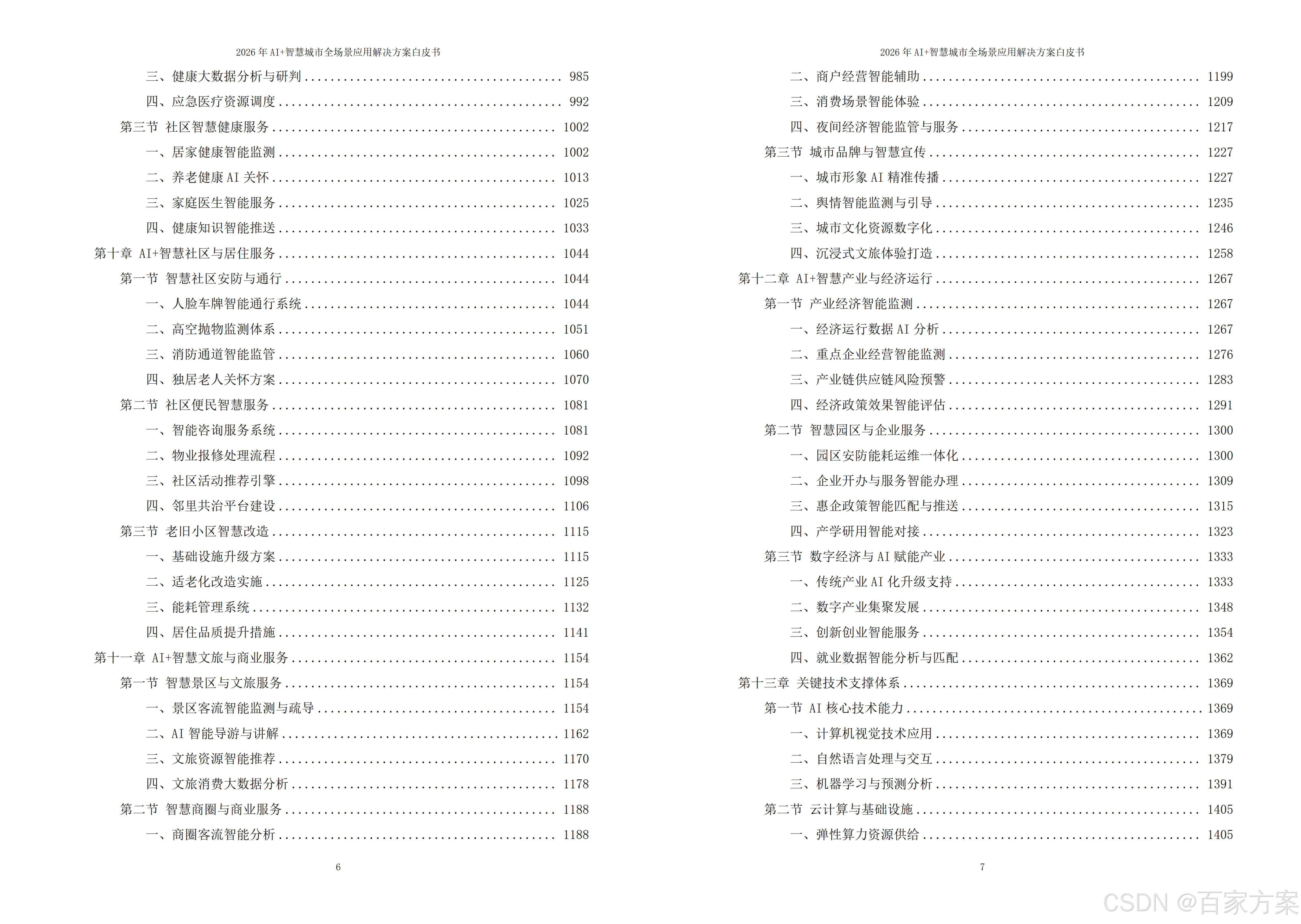 搜索【百家方案】,获取《2026年AI+智慧城市全场景应用解决方案白皮书》全1795页,其推出的《智慧城市解决方案大合集》以海量内容及全流程覆盖的资源体系,成为当前智慧城市领域极具价值的资料汇编,为各类主体提供从顶层设计到落地执行的"全攻略"。