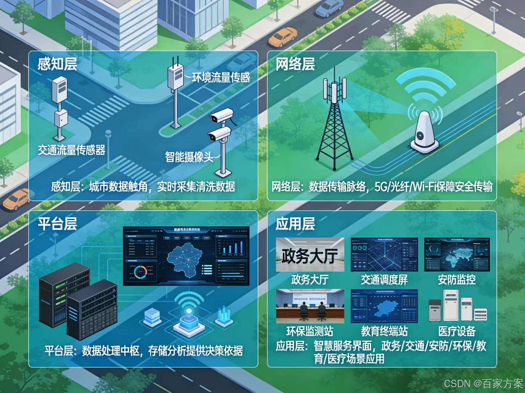 应用层直接面向城市居民与管理者,将平台层处理分析后的数据转化为实际可用的智慧服务。涵盖智慧政务的一网通办、智慧交通的智能调度、智慧安防的实时监控、智慧环保的动态监测、智慧教育的个性化学习以及智慧医疗的远程诊疗等多个领域。这些应用通过提升城市运行效率、优化公共服务质量,切实增强居民的获得感与幸福感。