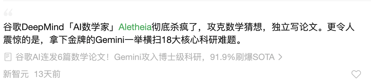 换句话说,Aletheia 更像一个"数学版编译器 + 调试器 + 搜索器"的组合体。