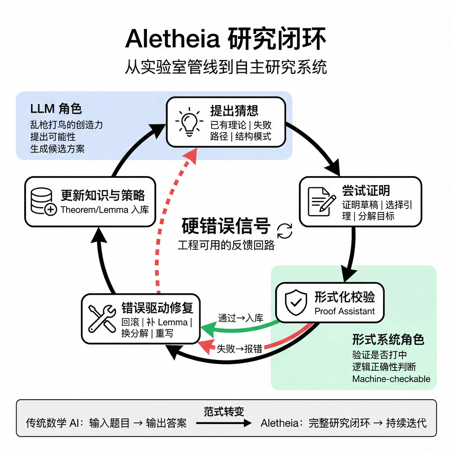 Aletheia 更像一个实验室管线,把它拆开看,最小闭环大概长这样: