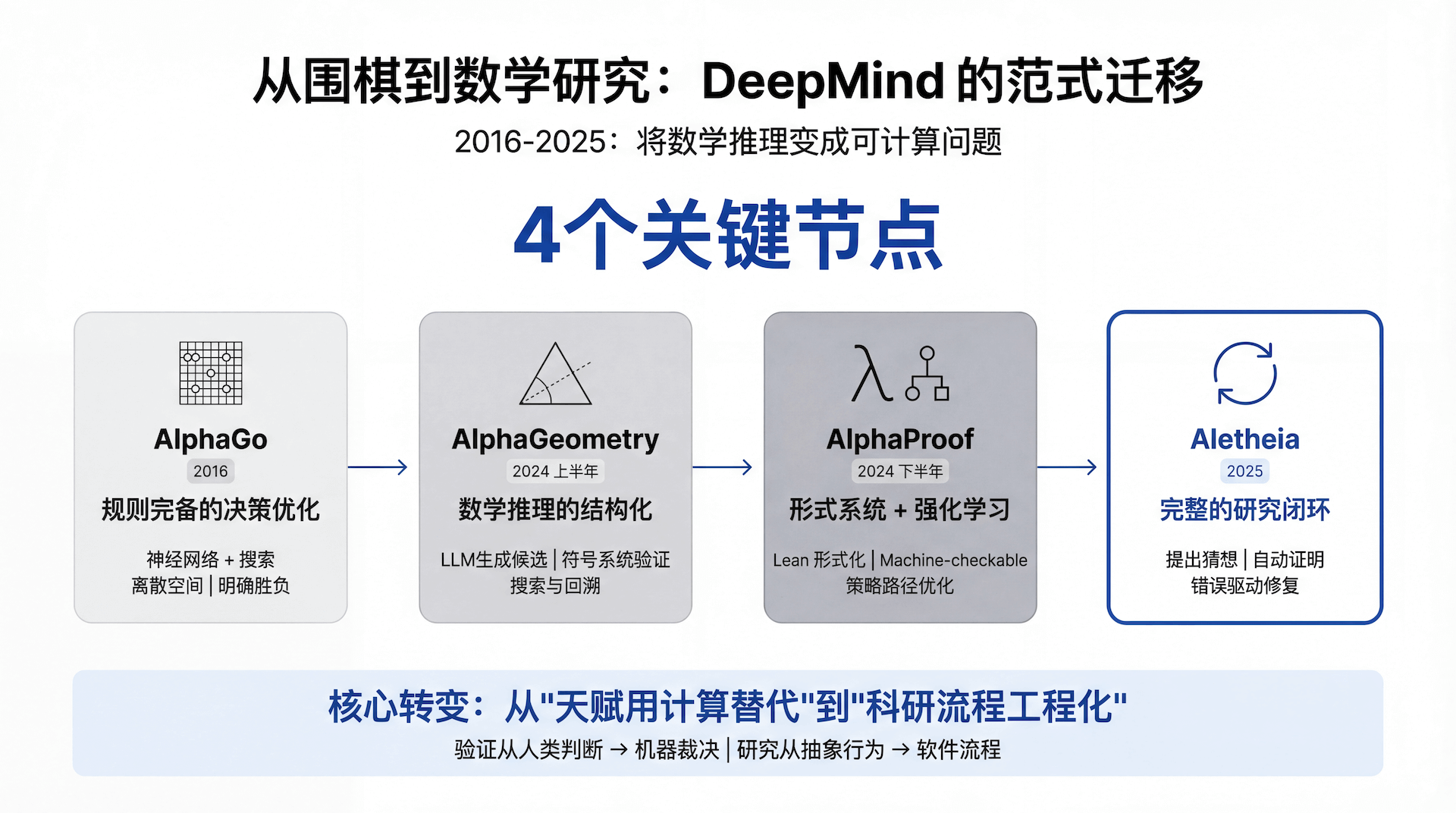 这个节点非常重要,因为 Google 已经开始把数学推理放到一个可验证的循环里了。