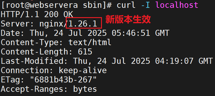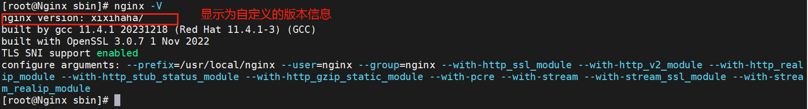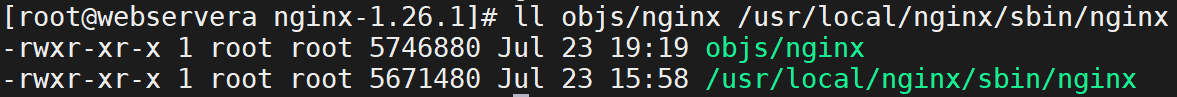 [root@nginx nginx-1.28.1]# rm -rf /usr/local/nginx/sbin/nginx [root@nginx nginx-1.28.1]# cp -p objs/nginx /usr/local/nginx/sbin/ #查看是否添加成功