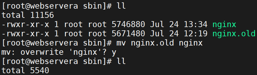 1.把之前的旧版的nginx命令备份: