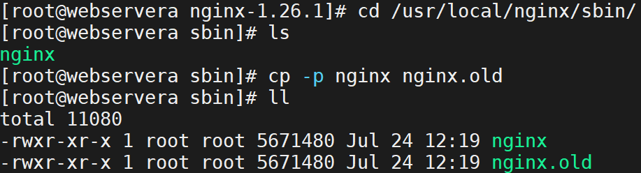 ↓做之前要先备份新版文件cp nginx nginx.26