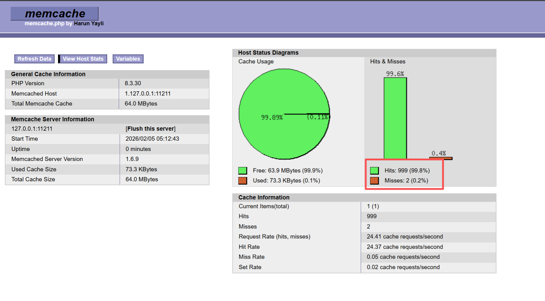 #重启memcache并访问没有缓存的php文件查看缓存命中