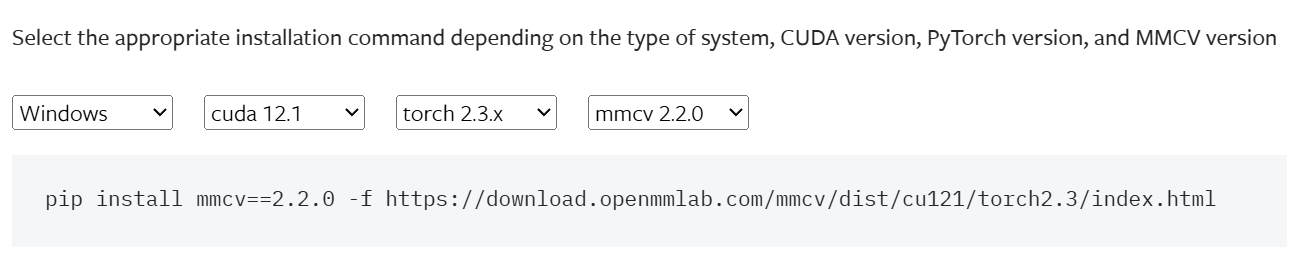安装遇到的问题是5060的架构需要Torch在2.5以上,但是mmcv安装Windows下找到最高是2.3.x,如果是问AI大概率就是让你直接使用命令行安装(如pip install mmcv==2.2.0 -f https://download.openmmlab.com/mmcv/dist/cu121/torch2.3/index.html),直接访问这个网站是存在的,但是替换成CUDA12.8以及torch2.5之后就会发现网址显示"此 XML 文件似乎没有与之关联的任何样式信息。",所以只能通过源码构建。but这个时候AI会让你删掉当前环境的torch,让你重新安装低版本的torch,最后的结果就是pytorch也无法使用,于是当前的思路就是先根据GPU的型号确定CUDA和torch的版本,之后再通过源码安装mmcv。