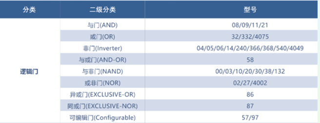 长晶科技逻辑门产品选型表: