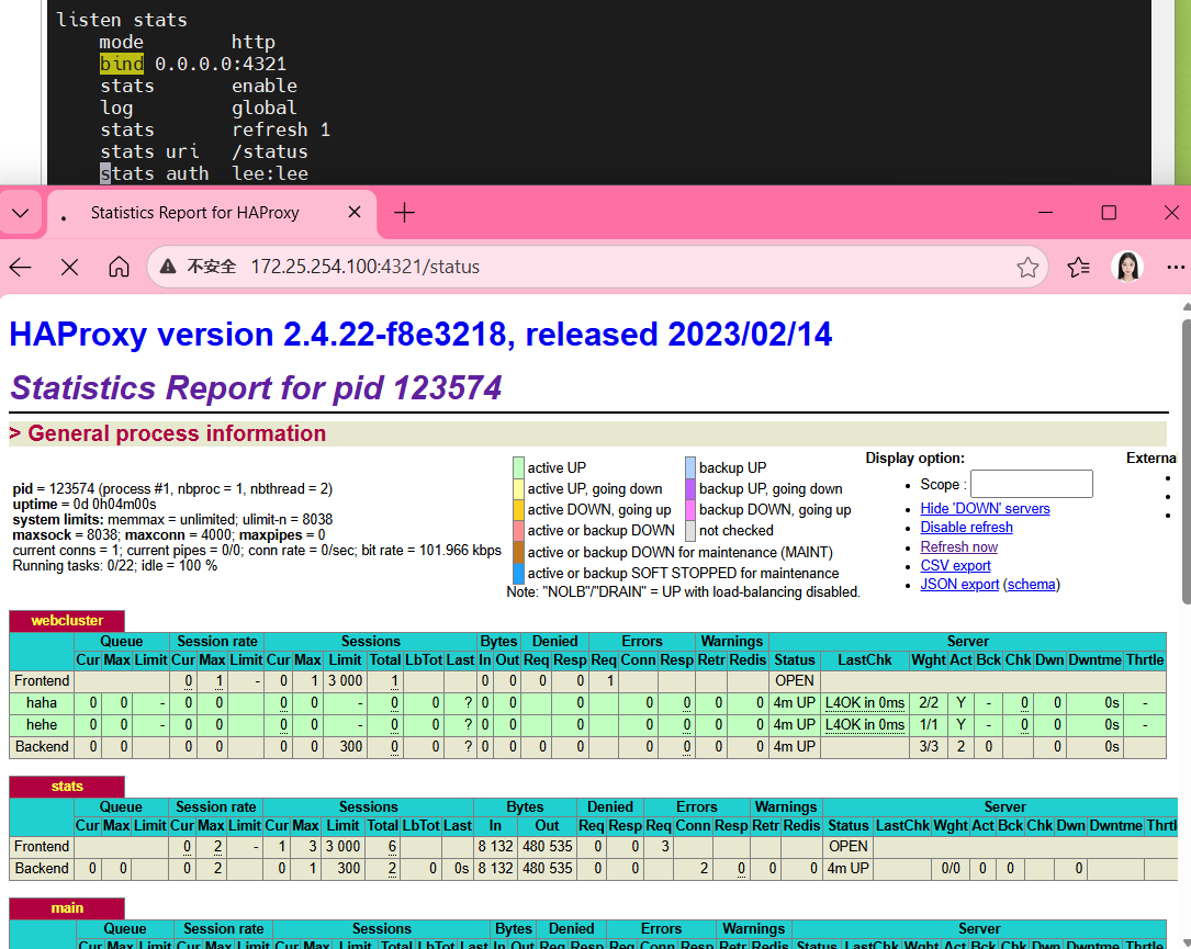 - 清理旧的 stats 文件并重启 HAProxy 使配置生效: