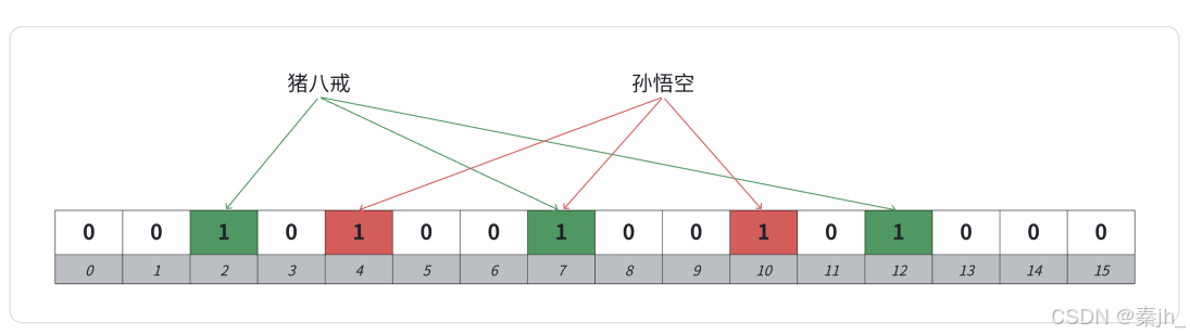 布隆过滤器默认是不支持删除的,因为比如"猪八戒"和"孙悟空"都映射在布隆过滤器中,他们映射 的位有一个位是共同映射的(冲突的),如果我们把孙悟空删掉,那么再去查找"猪八戒"会查找不到, 因为那么"猪八戒"间接被删掉了。