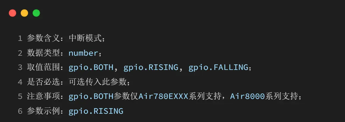 ioqueue.exti(pin, pull_mode, irq_mode, onoff)
