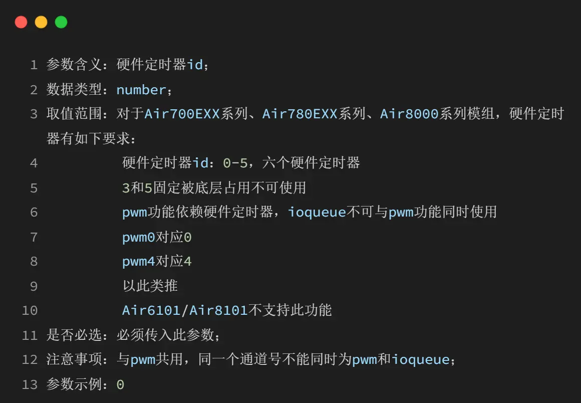 pwm 功能依赖硬件定时器,ioqueue 不可与 pwm 功能同时使用