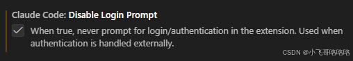 在设置中禁用登录,此步骤常见的选项是通过创建 ~/.claude/config.json(Mac/Linux)进行操作,vscode的插件里可以直接设置。这一步要设置的原因是如果不设置的话会强制进行登录。