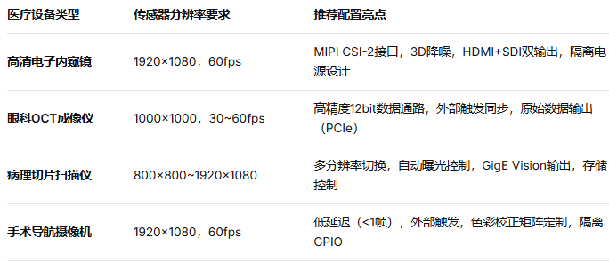 这些指标在医疗设备中的典型应用包括高清电子内窥镜、手术导航摄像机、眼科成像仪、病理切片扫描仪等场景。
