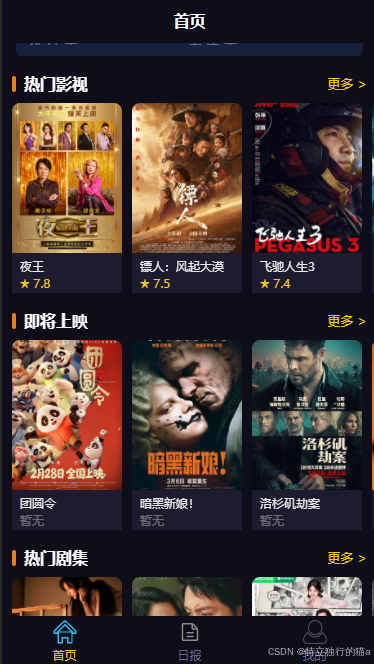 下图是实现的热门影视和即将上映等横向滚动卡片组件运行效果。