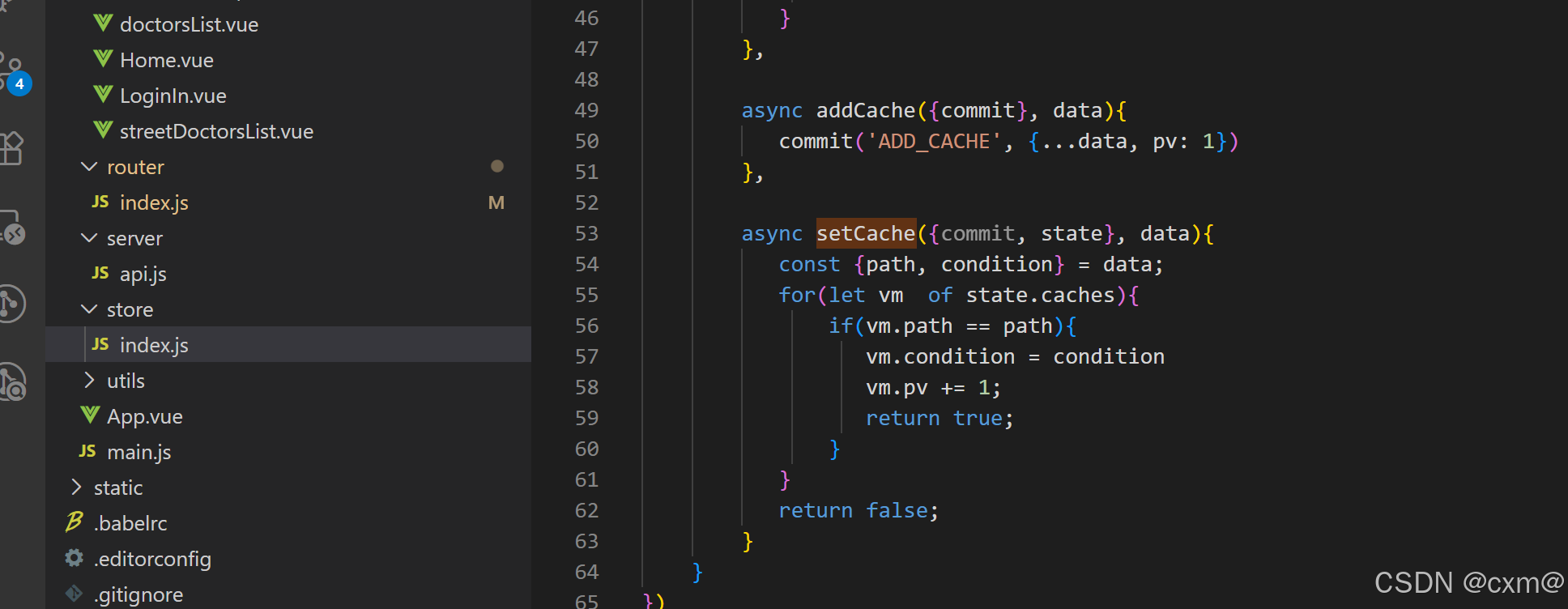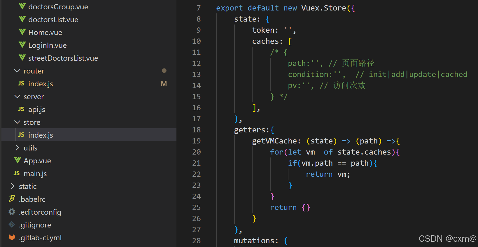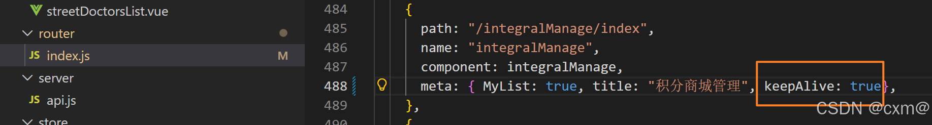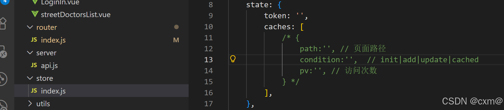3,使用vueX对需要缓存的组件路由进行存储,存储方式参考: