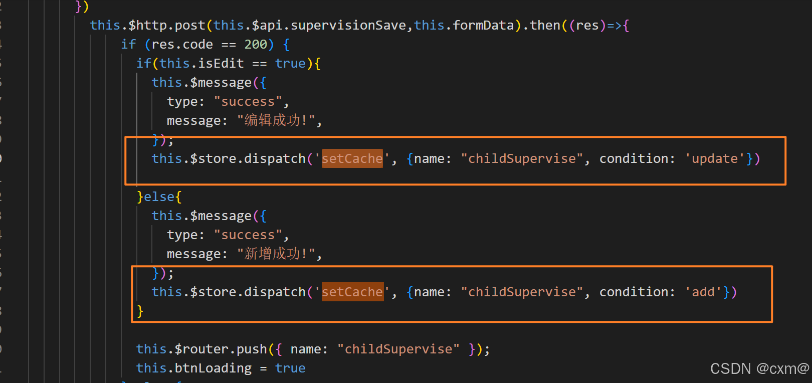 新增和编辑的时候也可以对组件的缓存进行更新,比方说可以通过如下方式更新