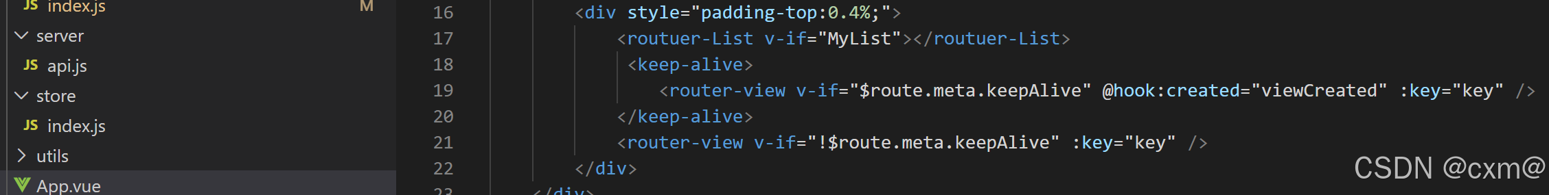 2,在app.vue中根据this.$route.meta.keepAlive的值来判断走哪个分支,比方说