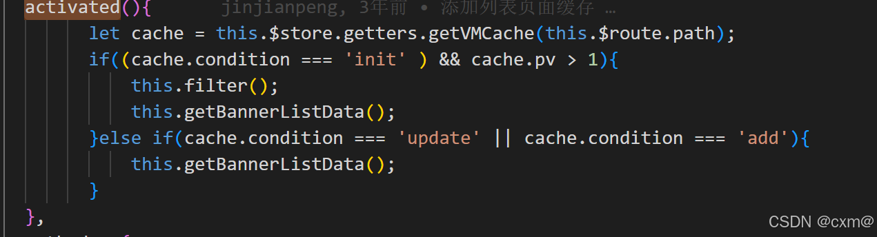 (1)当列表需要缓存的时候,keep-alive处于激活状态时,即activated触发的时候,判断当前路由是否存在缓存列表中,存在返回当前对象