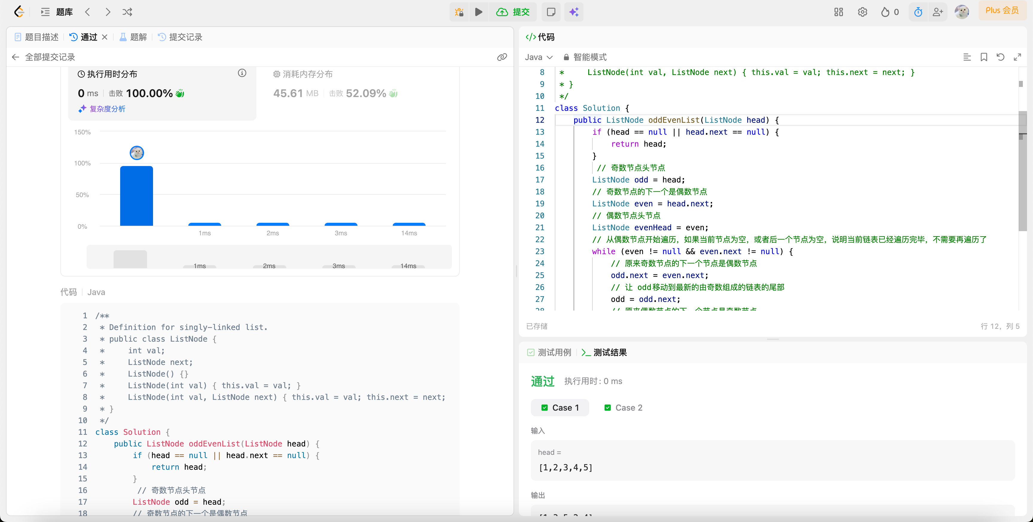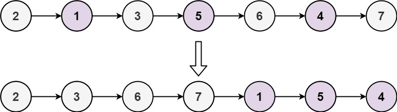 // 右奇数节点组成的链表的尾部的 next 指针指向由偶数节点组成的链表的头部