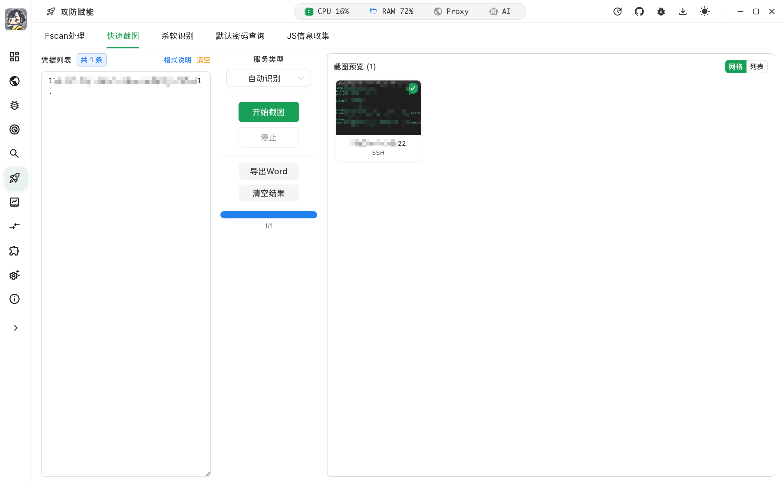 | 辅助工具 | 内置 CyberChef、JWT 密钥爆破、编码转换、Fscan 结果处理、攻防批量截图 |