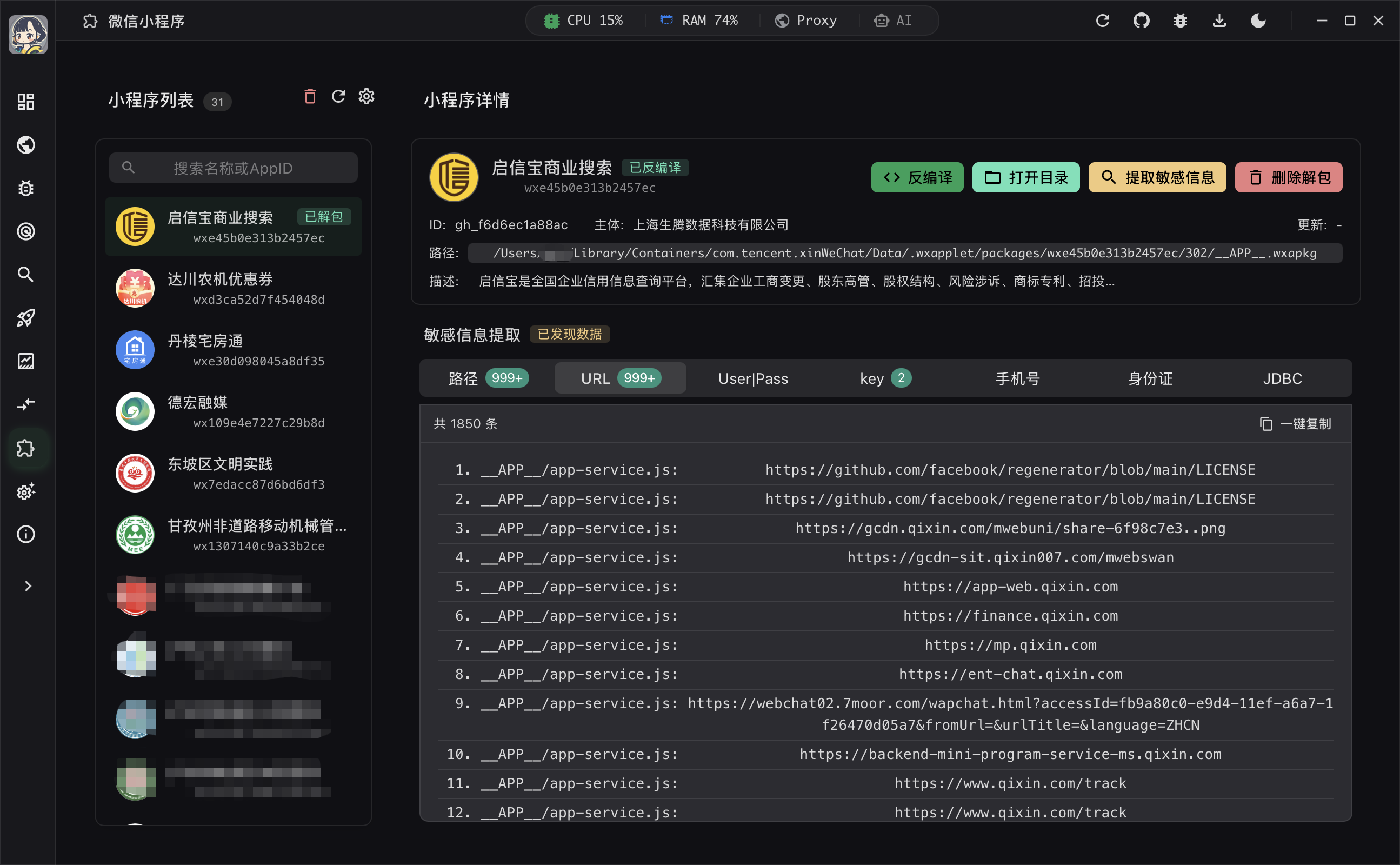 - 小程序敏感信息搜集 - 自动提取小程序中的敏感信息