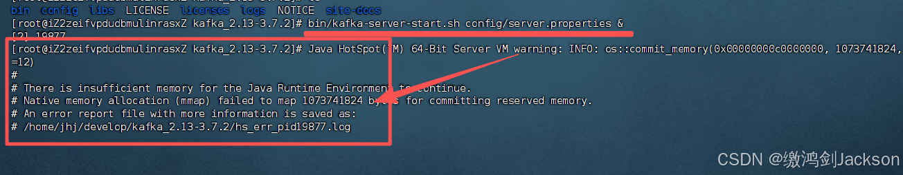 此时报了这个错误,说明kafka默认要分配1G的内存,但是我们服务器可能剩余的可用内存不足1G,如下图
