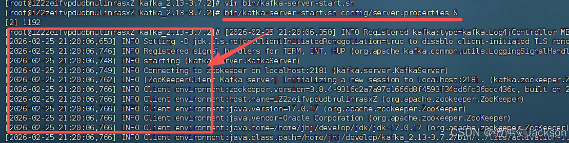 bin/kafka-server-start.sh config/server.properties &