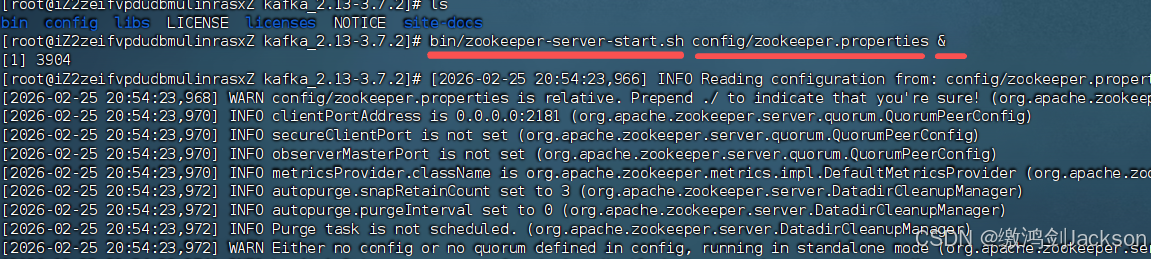 bin/zookeeper-server-start.sh config/zookeeper.properties &