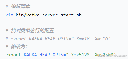 修改bin/kafka-server-start.sh脚本,将给kafka默认分配内存由1G降低到256MB