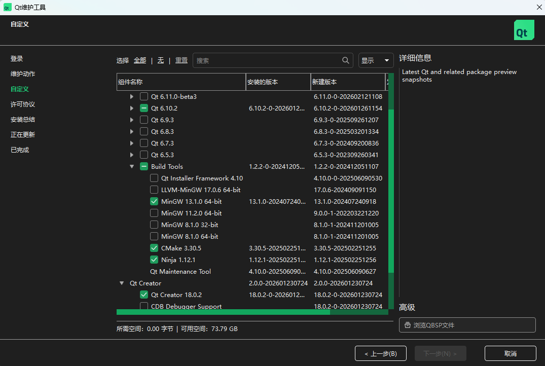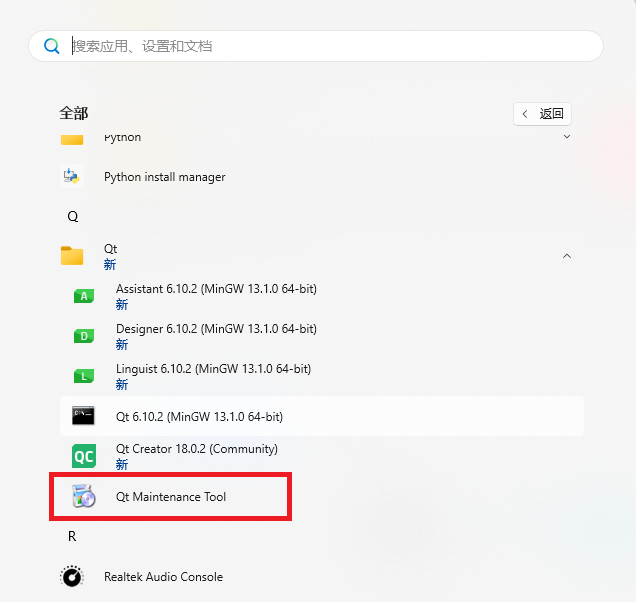 如果后期想要添加、修改qt的组件,可以打开qt维护工具进行操作