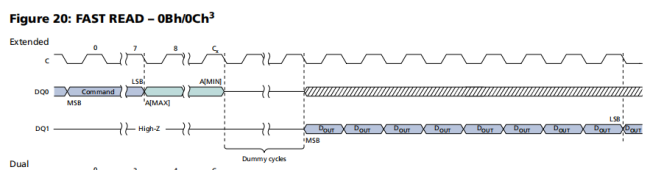 由以上内容可知,READ和FAST READ区别在于FAST READ可以用更高的速率读取数据,而且在读取的过程中需要Dummy cycles。