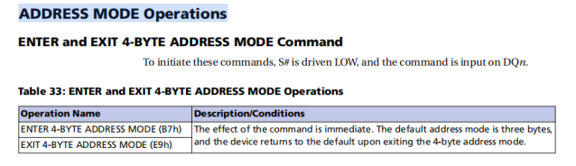 该命令立即生效。默认的3-byte address mode,退出4-byte address mode后,设备将恢复到默认的address mode。