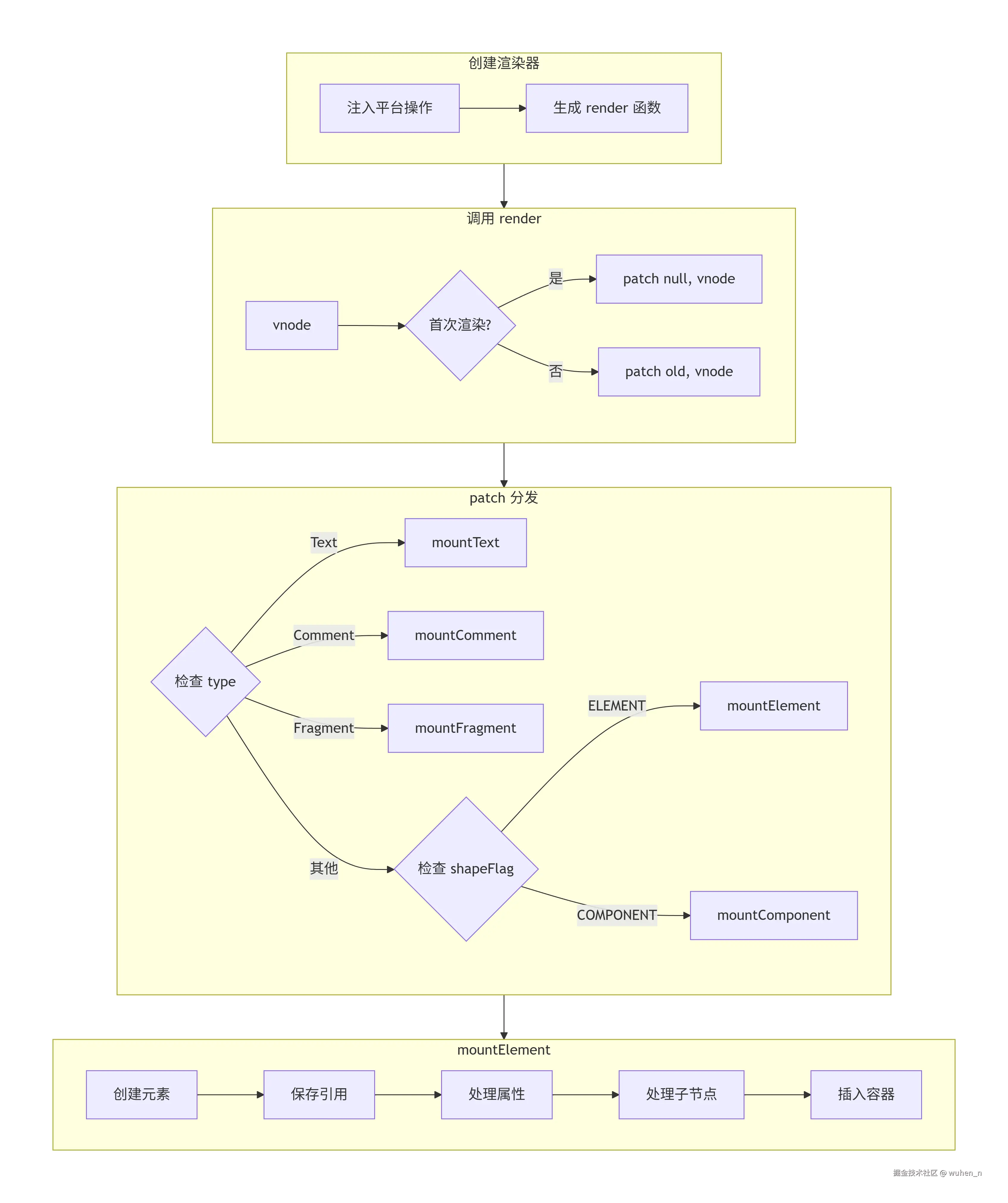 Vue3 的渲染器采用了清晰的分层设计: