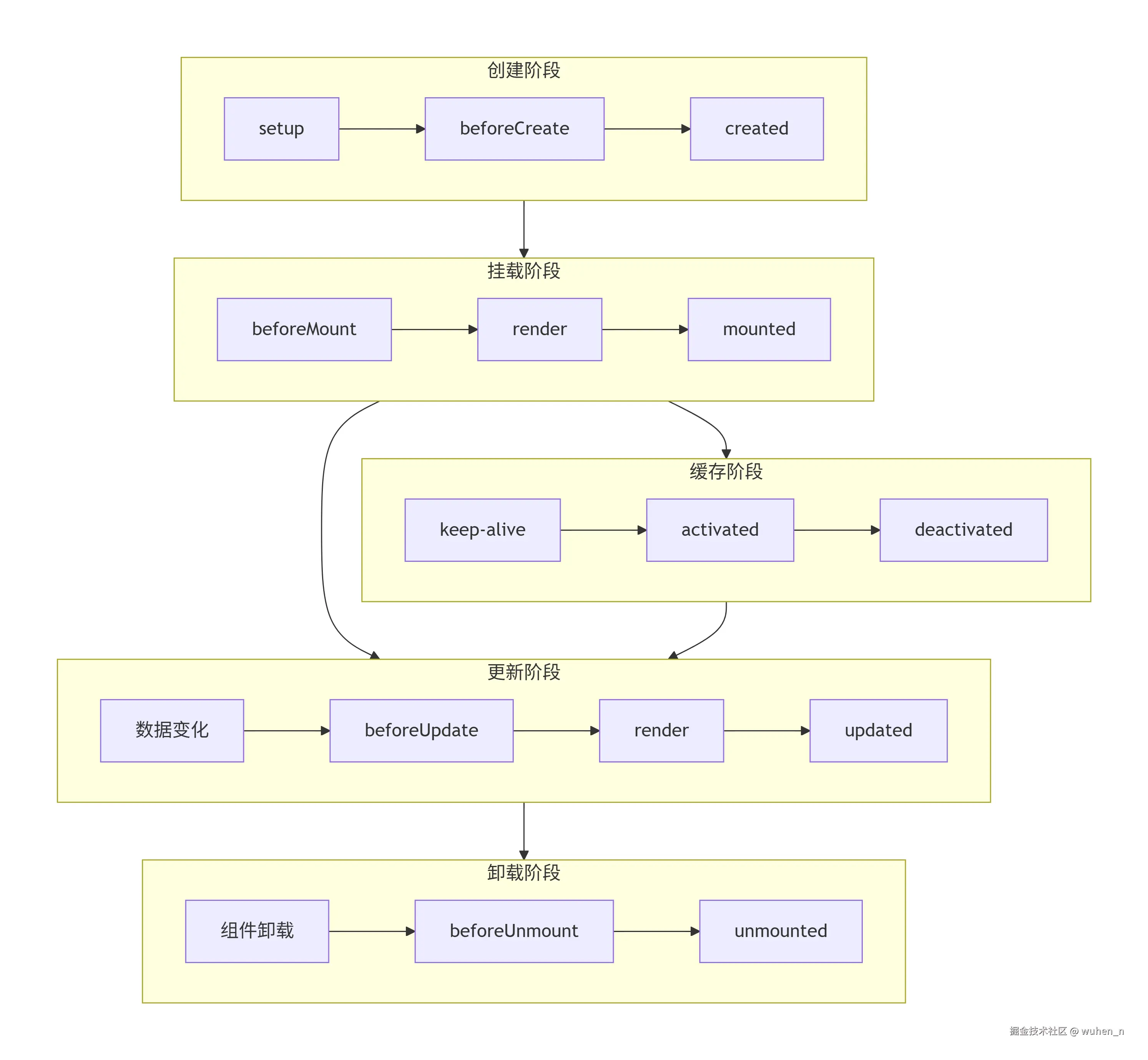| 缓存阶段 | activated / deactivated | 配合keep-alive | 缓存组件的激活/失活 |