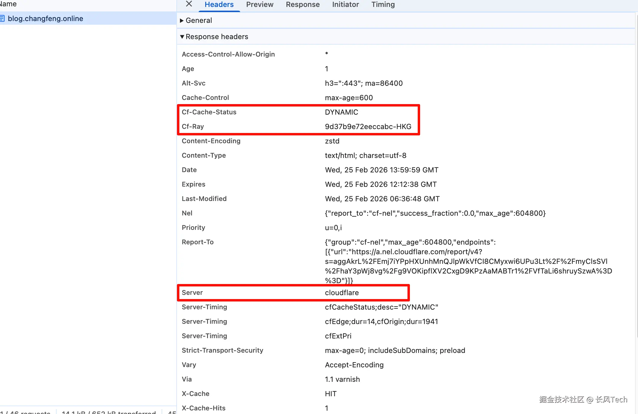 配置完成后,我们的网站就已经使用cloudflare进行CDN加速了,我们可以用Chrome Devtools的Network面板抓包验证。