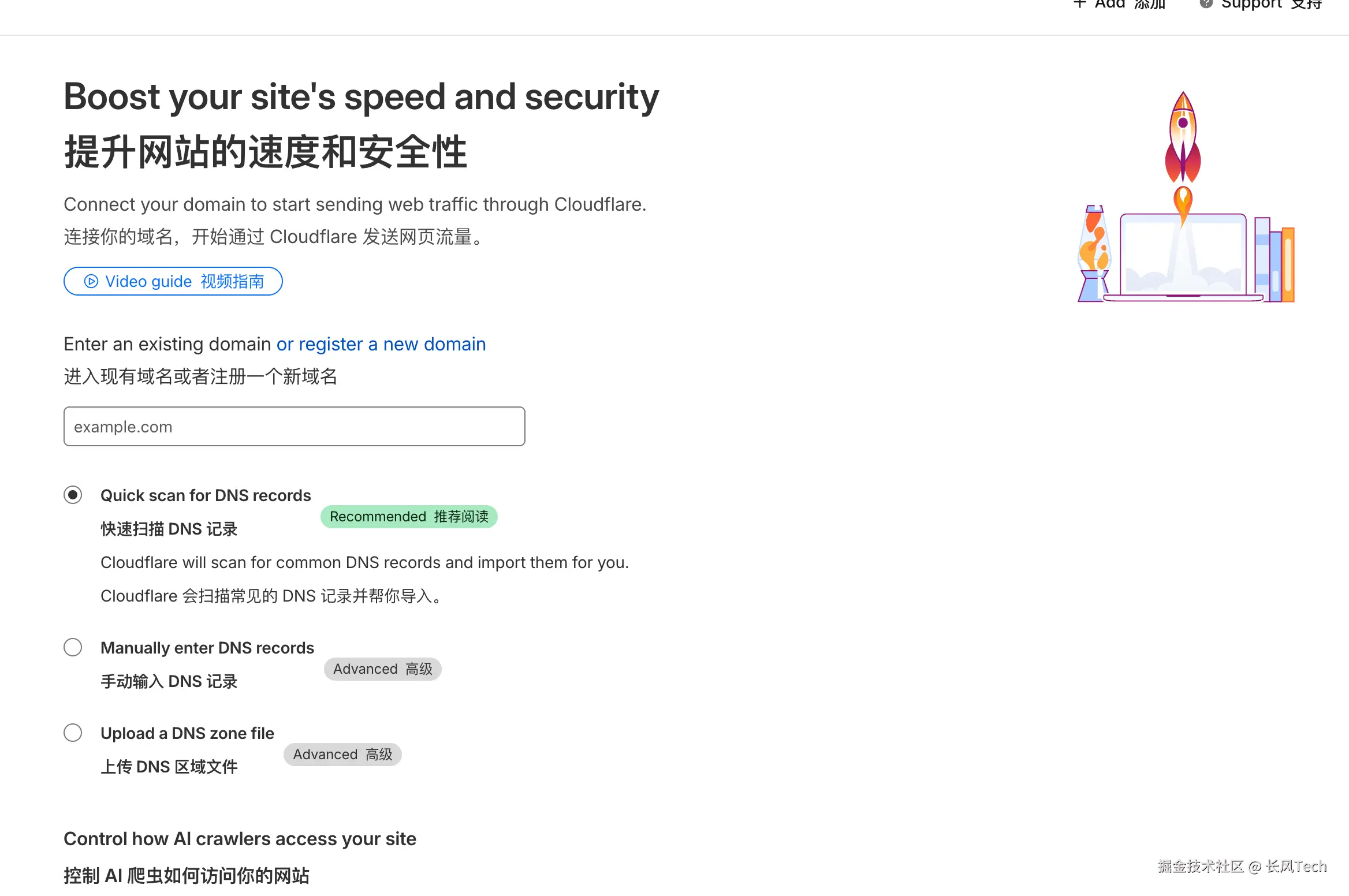 在cloudflare官网登录后添加一个域名。