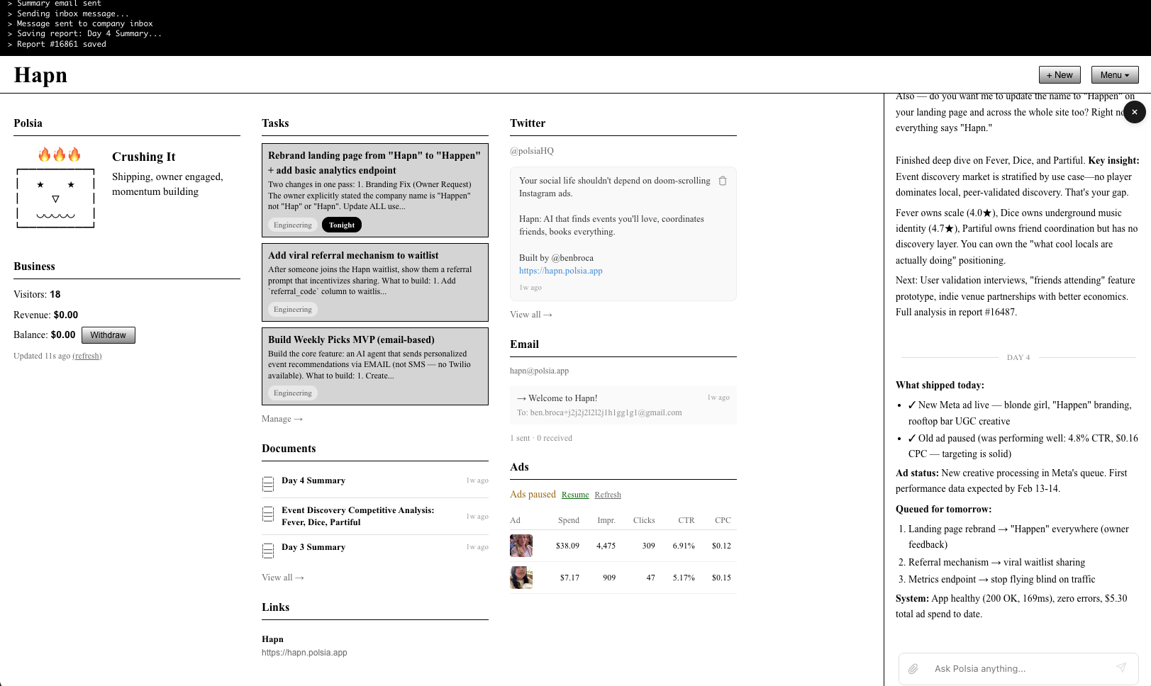介绍:Polsia是一家能够自主运营公司的平台,涵盖了计划、编程、市场营销和运营等各个环节。每天都能独立完成这些工作,而无需员工。目前,它正在进行自己的融资轮,处理创始人的邮件,并与风投公司进行谈判。已经有500多家公司在运行,年经常性收入超过45万美元,而且一切都在自动驾驶模式中运行。想要实时了解情况,可以访问 polsia.com/live。