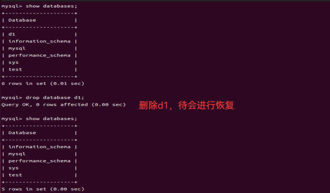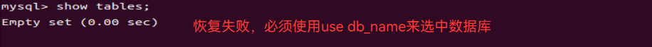 如果备份一个数据库时,没有带上-B参数, 在恢复数据库时,需要先创建空数据库,然后使用数据库,再使用source来还原