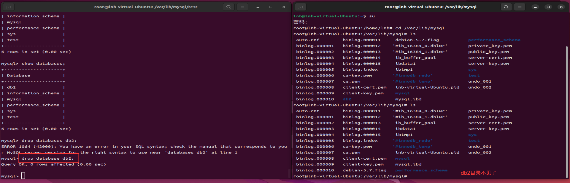 对应的数据库文件夹被删除,级联删除,里面的数据表全部被删