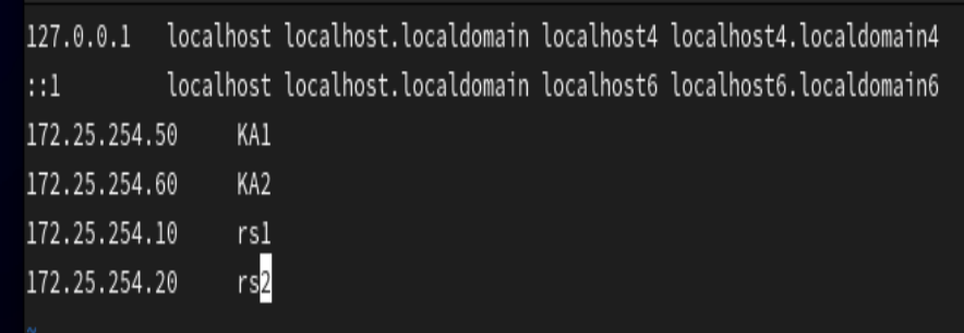 实验环境配置(rh1 rh2 ka1 ka2)