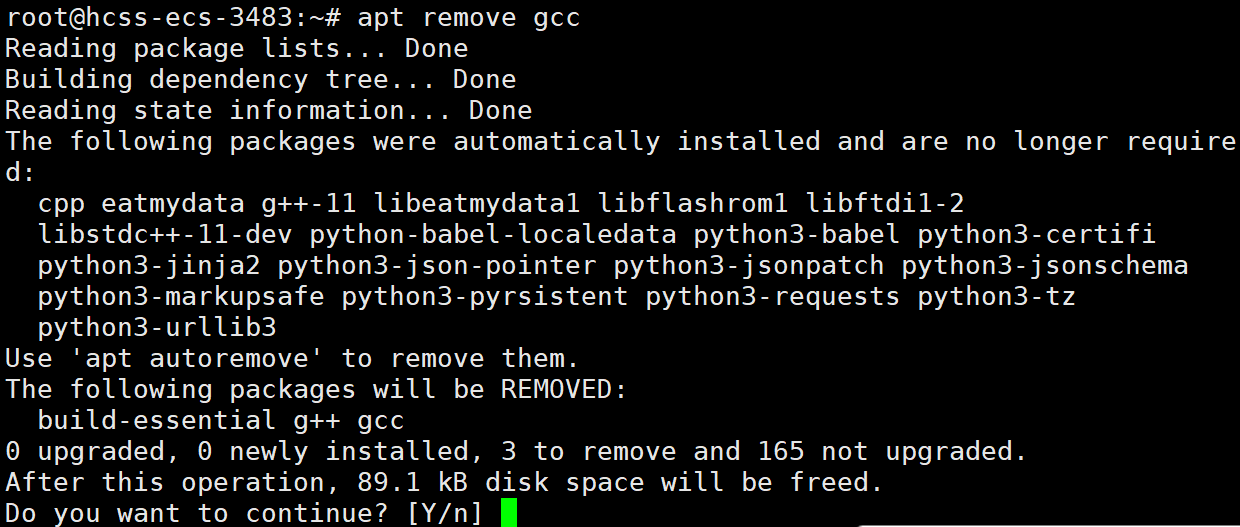 可以看出在我们输入这条命令后,系统会询问我们是否删除。