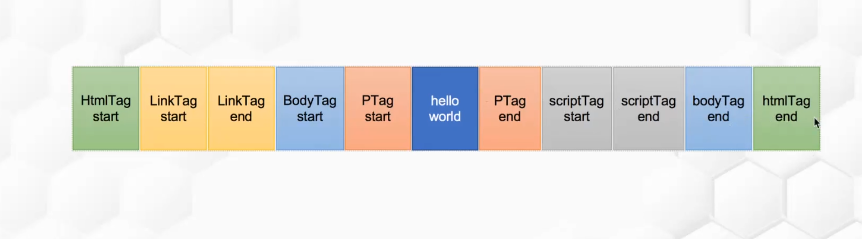 HTML字符串首先被**分词器(Tokenizer)**拆分为各种类型的Token: